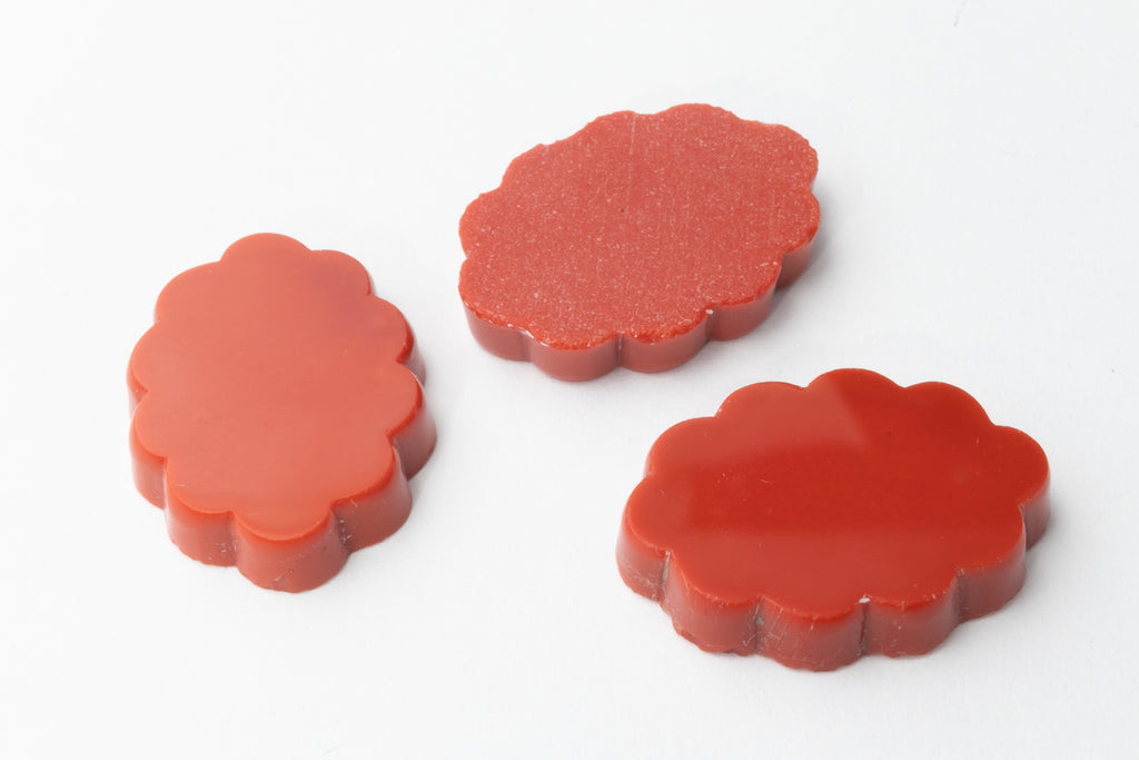 12.84mm x 17.86mm table cut oval flat back with scalloped edges like a cloud.