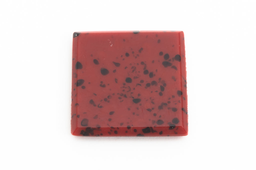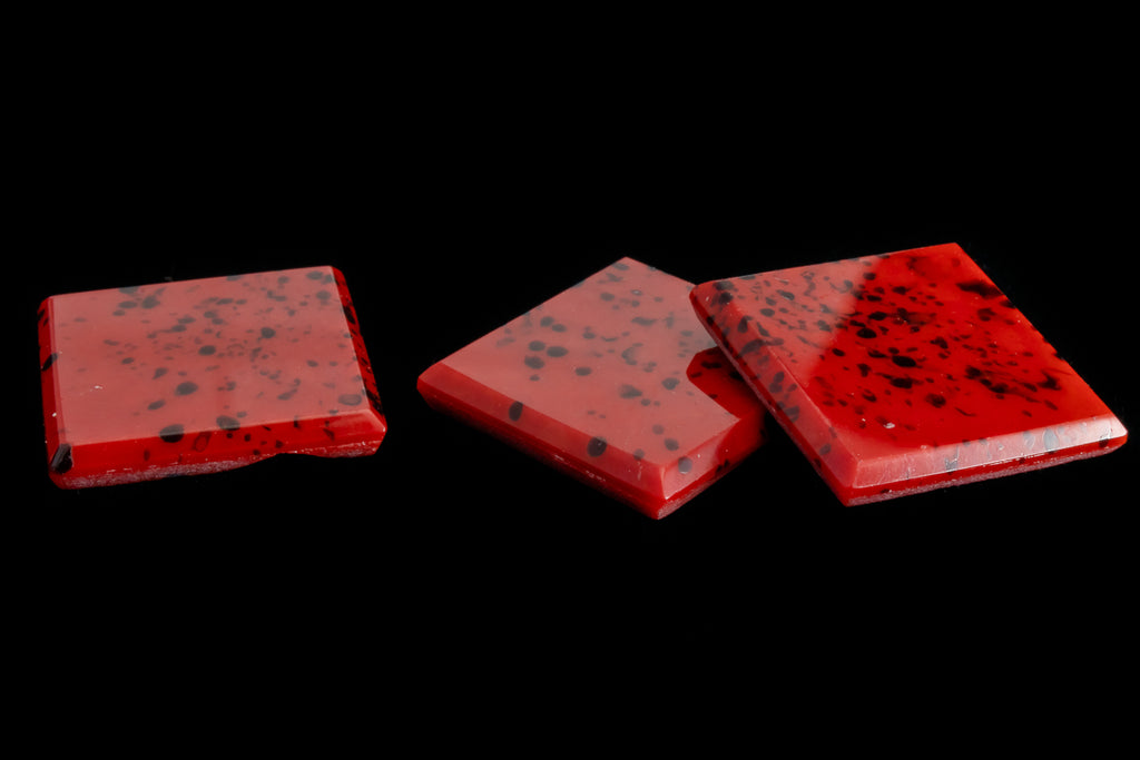 Opaque dark red with black speckles.Made in Germany or the Czech Republic in the 1960's or earlier.