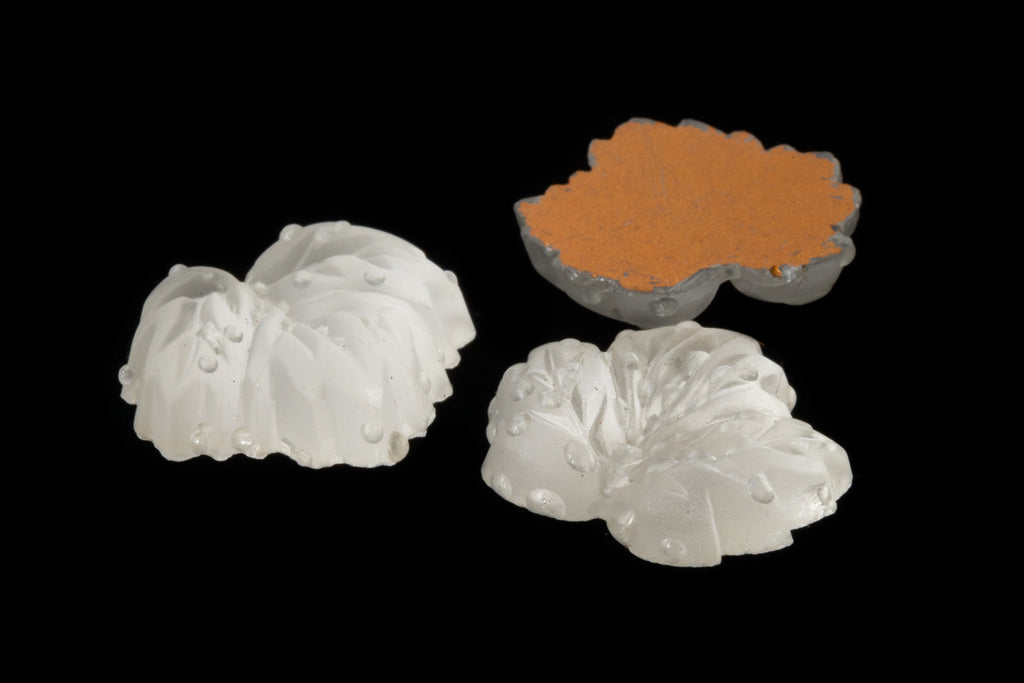 14.68mm x 16.36mm flat back dimensional maple leaf with vein details and raised "dew drops".