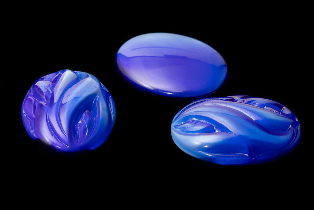 14.7mm x 19.64mm low dome oval flat back with "carved" curving lines.