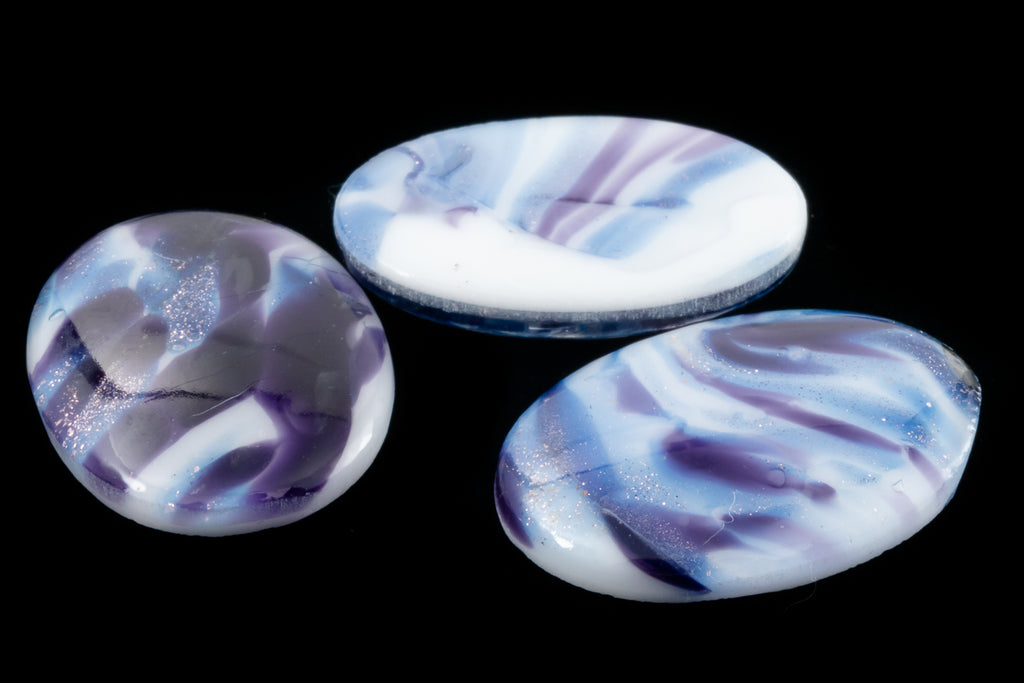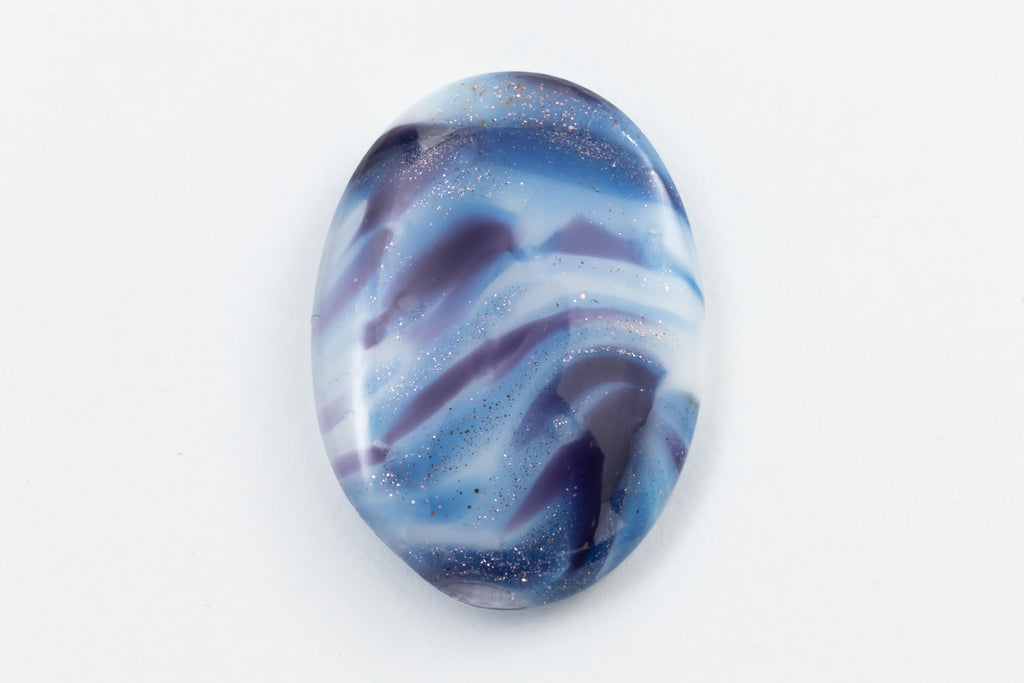 Vintage 18mm x 25mm Silver Flecked Blue/Purple Marble Oval Cabochon #XS89-D