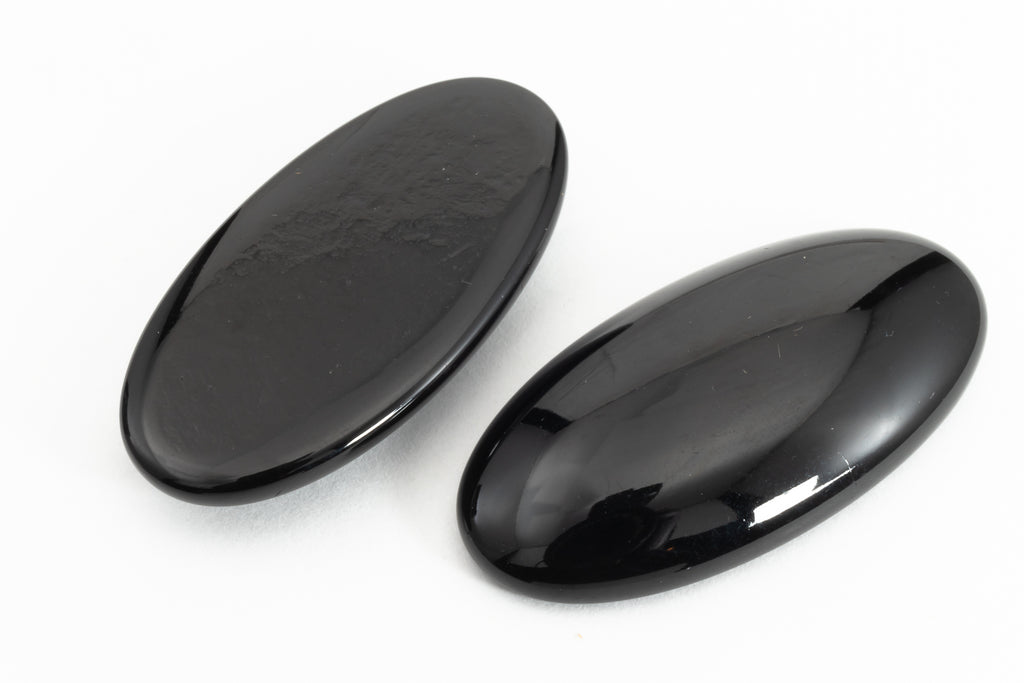 Vintage glass cabochon.20.23mm x 39.5mm opaque black low dome oval flat back.Made in Germany or the Czech Republic in the 1960's or earlier.Sold individually.