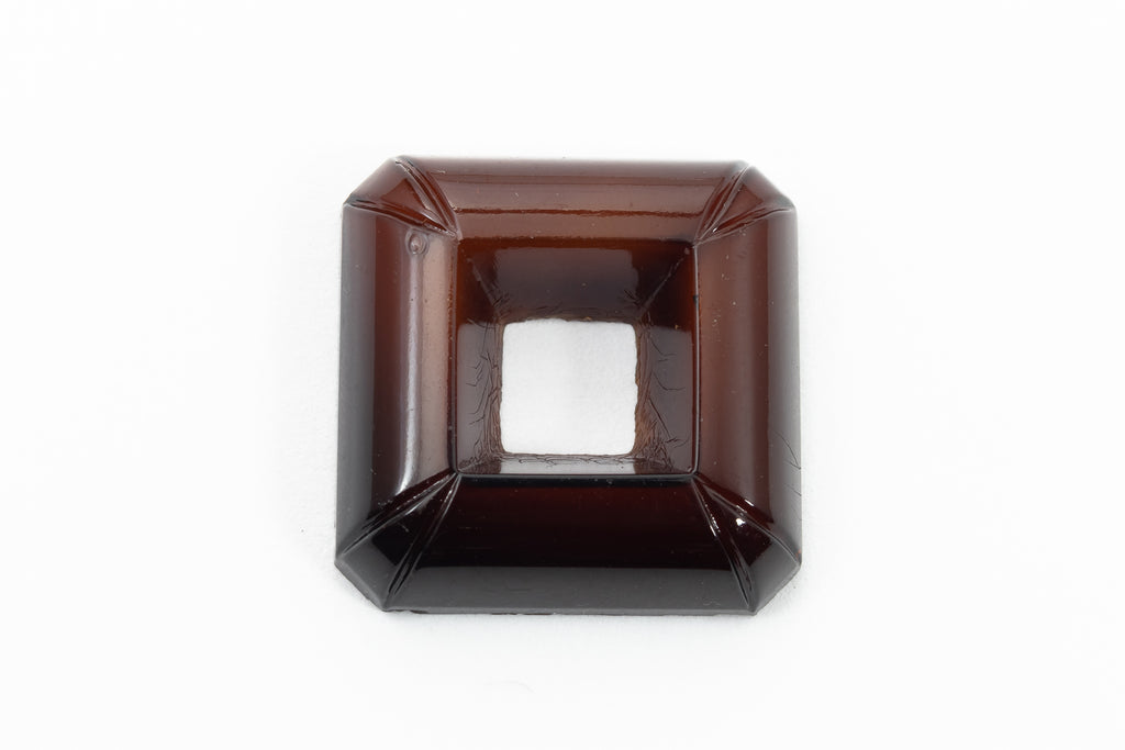 22.24mm x 21.73mm square cabochon with open center and corner detail.