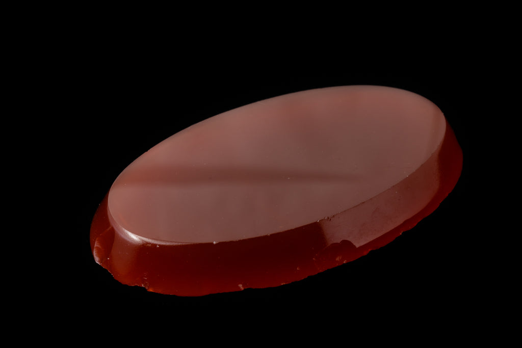21.6mm x 36.12mm carnelian red low dome oval with flat back and no foil.