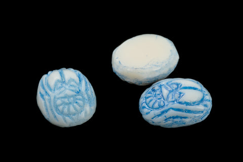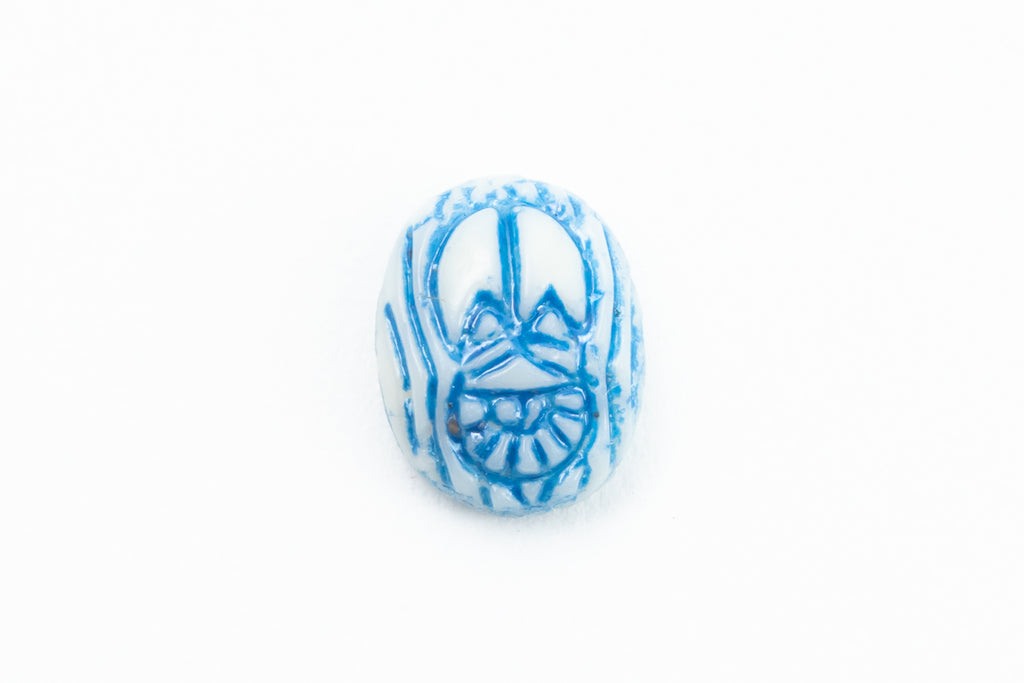 6.12mm x 7.91mm Egyptian Revival style white scarab with light blue detail.
