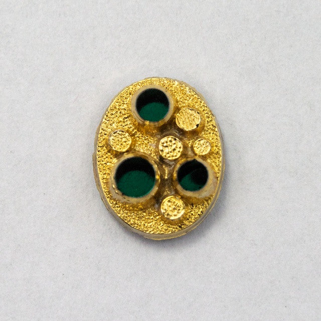 8mm x 9.74mm gold oval with raised dots in gold and green.