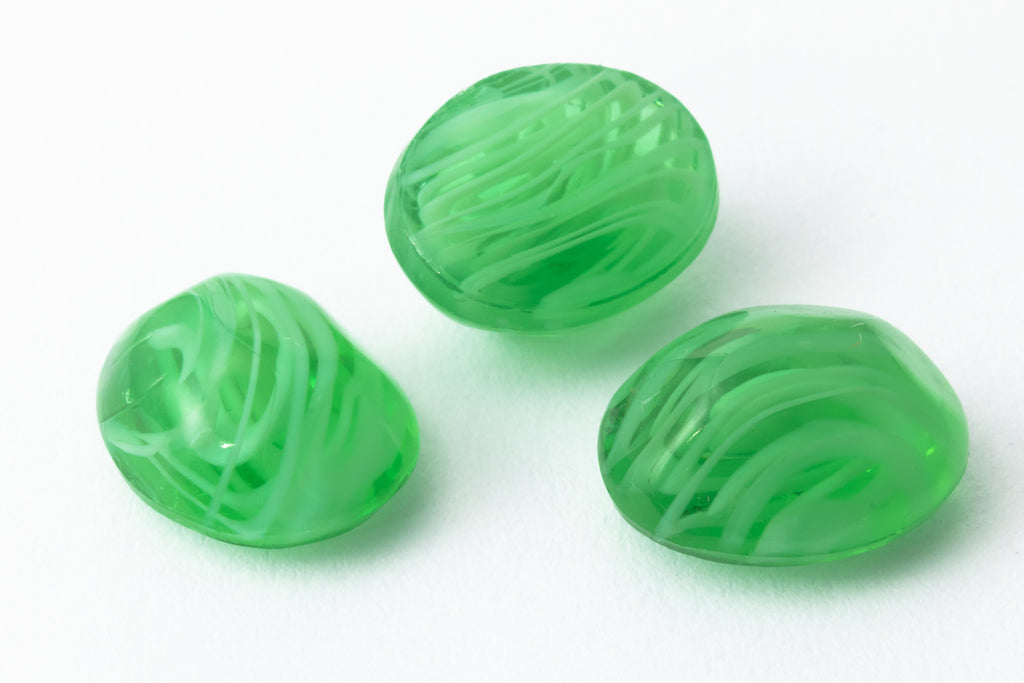8.1mm x 10.1mm transparent grass green oval swirled with white.
