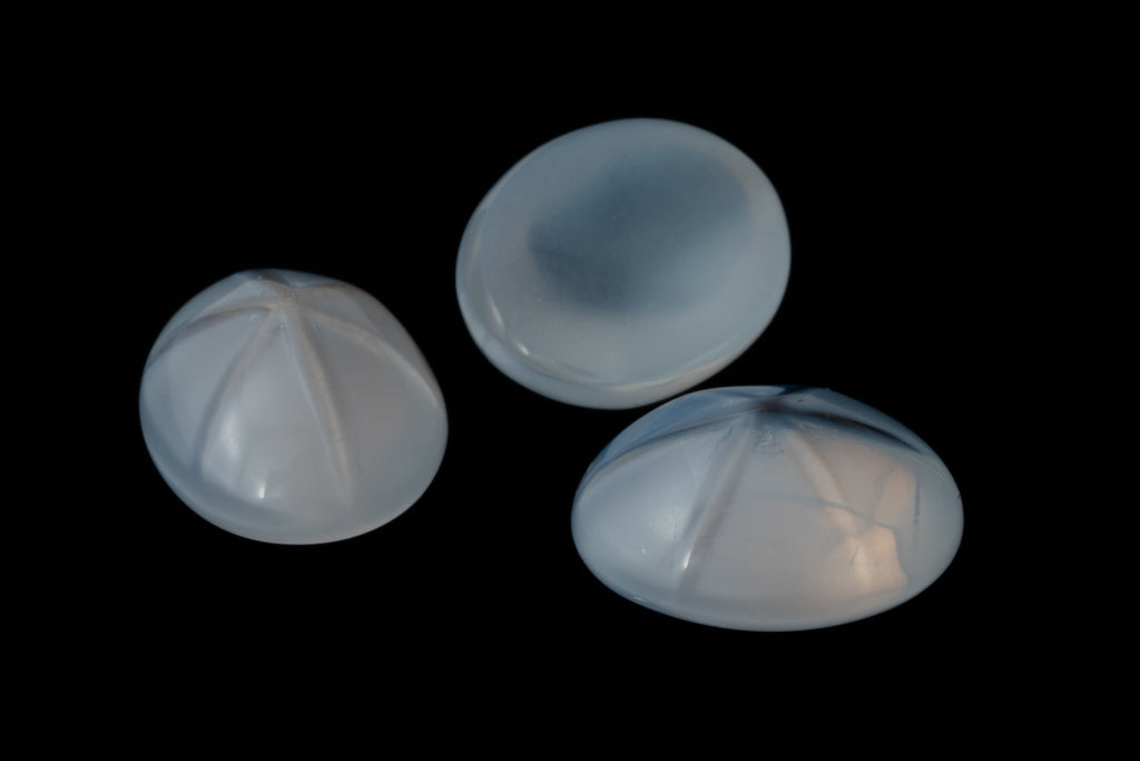 Opal white with six rayed white starburst "asterism".