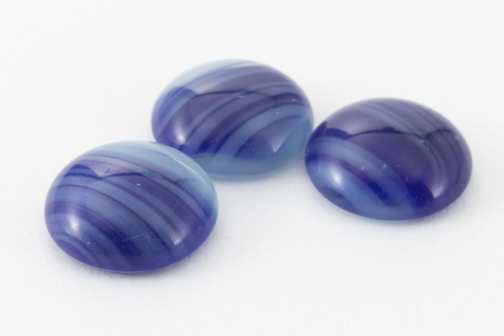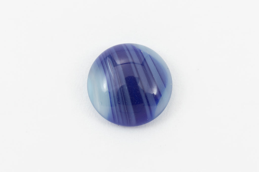 9.36mm smooth round flat back with dark indigo stripes on light blue.