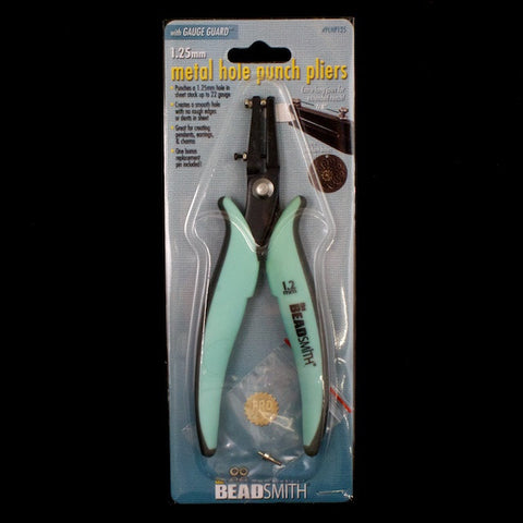 These pliers punch a 1.25mm hole in metal sheet stock up to 22 gauge.