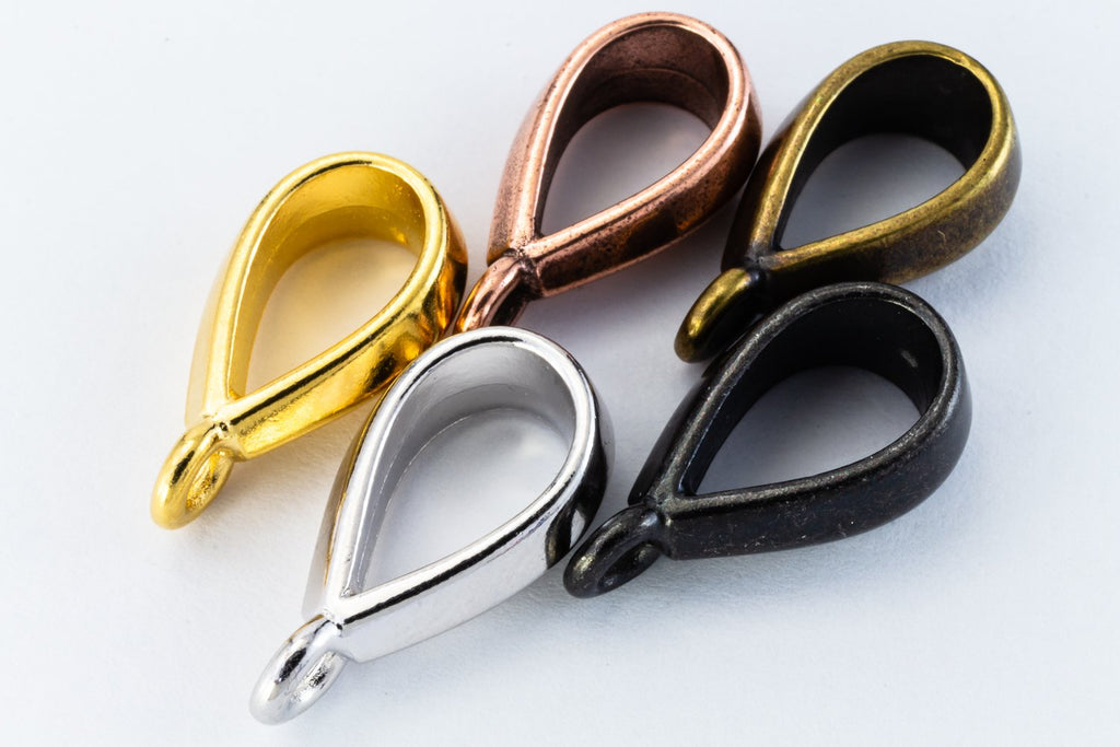 10mm x 18mm Classic bail. Inner diameter of bail 6mm, inner diameter of loop 2mm. Large hole is ideal for working with cord.