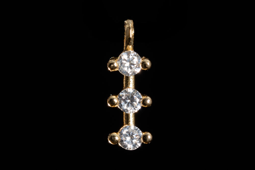 10.5mm x 3.5mm drop made of three Cubic Zirconia stones all in a line.