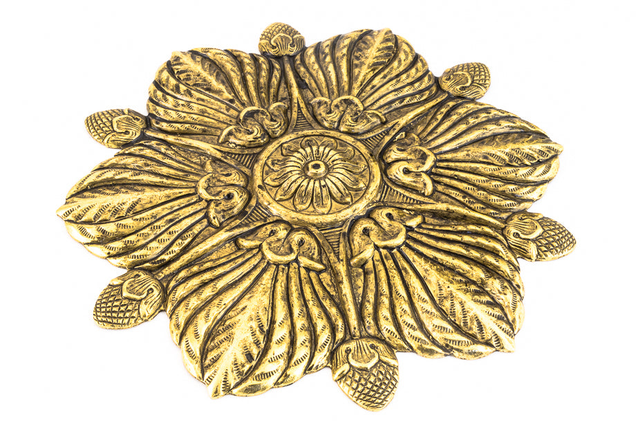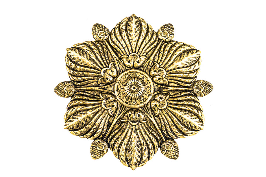 100mm antique gold detailed flower with six petals.