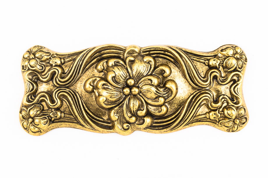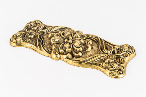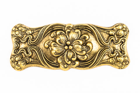 100mm x 40mm antique gold rectangle with Art Nouveau style floral motif.
