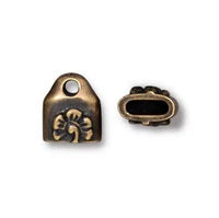 10mm x 8.75mm crimp end cord with delicate blossom and 2mm hole at top.