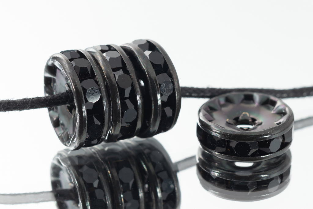 10mm x 2mm Swarovski encrusted rondelle bead with 2mm hole.