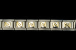 Silver with raised gold letter "N".