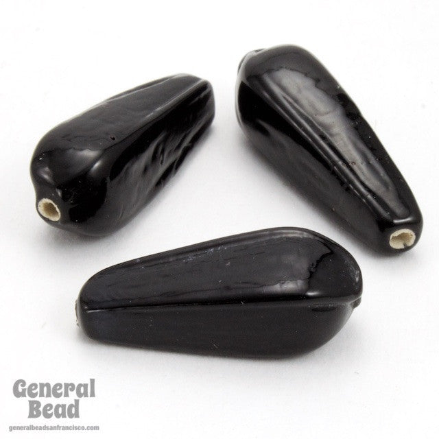 10mm x 25mm Jet Black Four Sided Glass Teardrop (6 Pcs) #3566