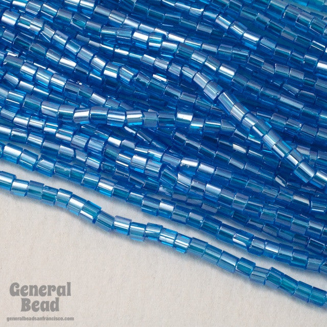 Size 11 faceted hex cut six sided seed bead in transparent luster sky blue.