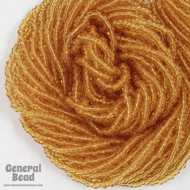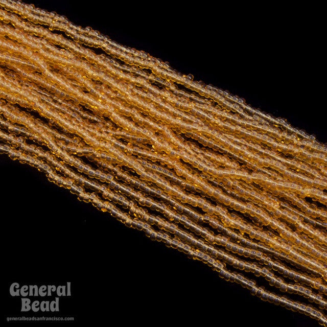 Size 11 transparent topaz seed bead.