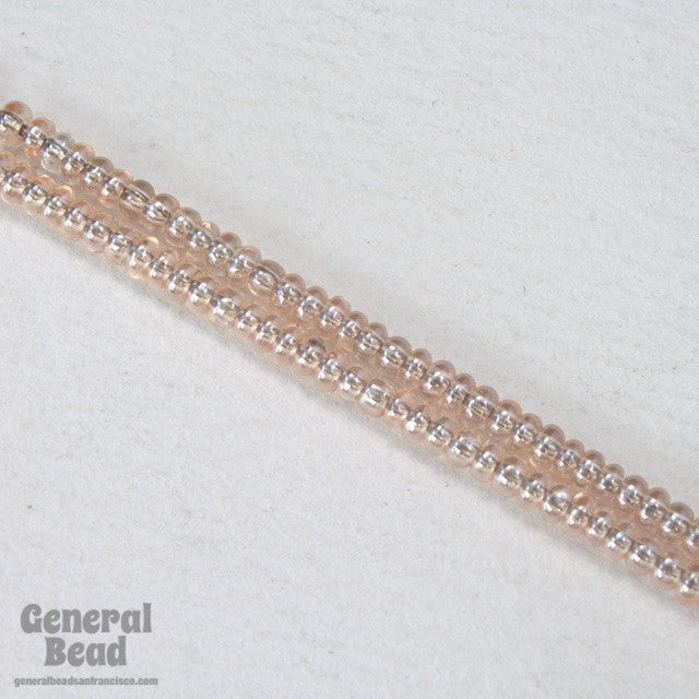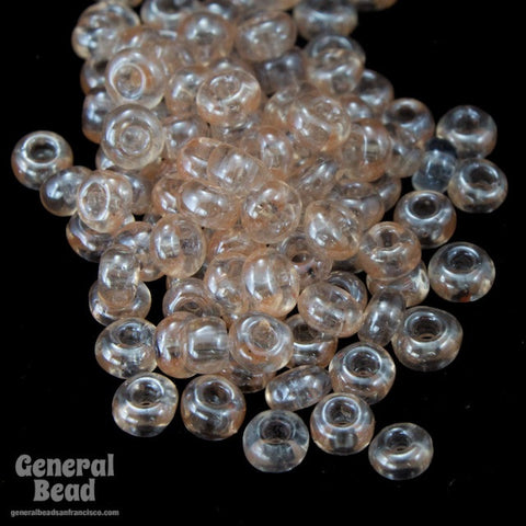Size 11 seed bead. Transparent very light peach luster.
