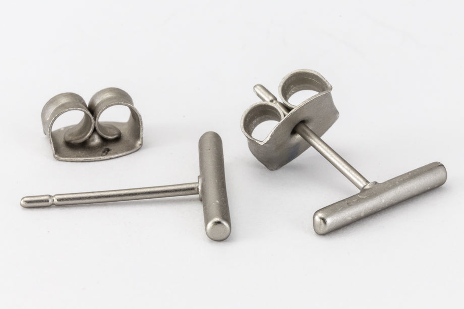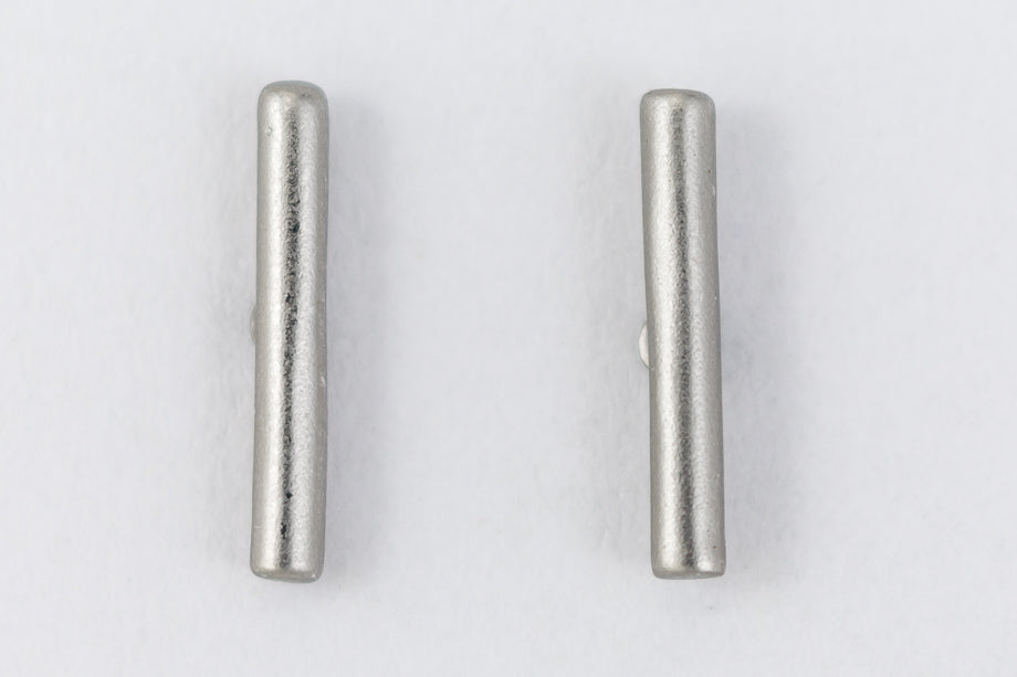 Matte silver lead and nickel free plating over lead free pewter. Earring clutch included.