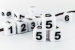 11mm white plastic cube beads with black number "5" on four sides.
