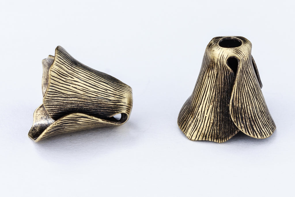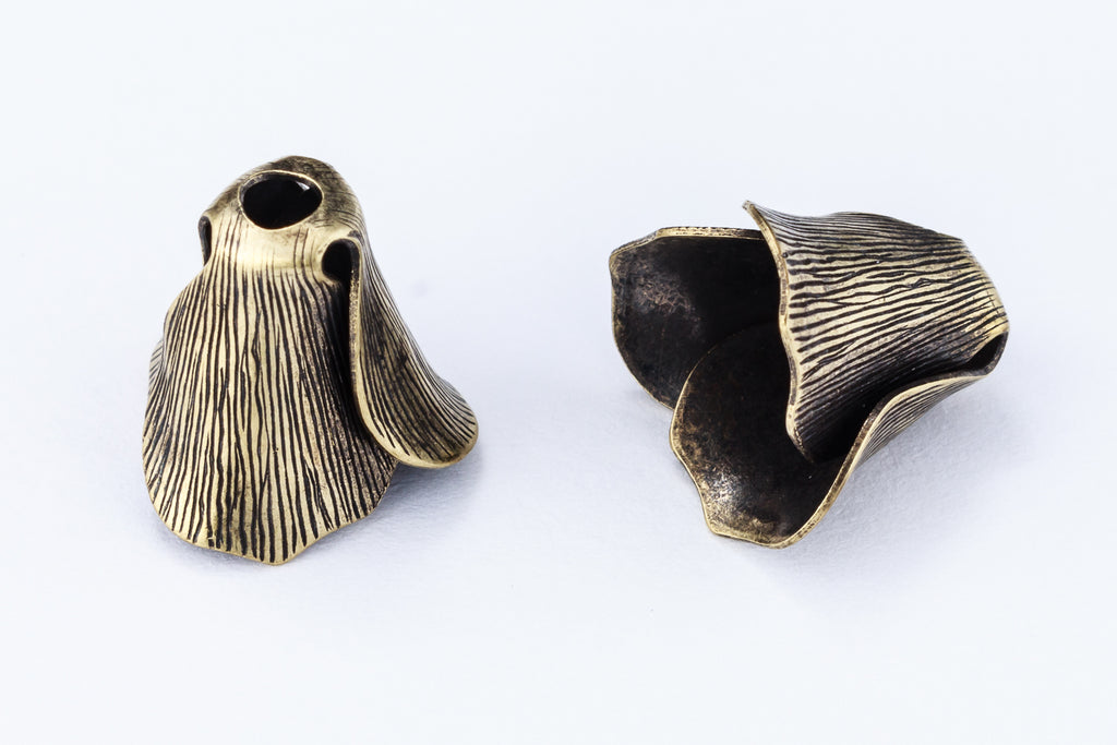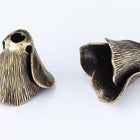 11mm x 12mm antique brass bead cap shaped like a poppy flower with 3.5mm hole at top.