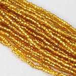 Size 12/0 silver lined gold glass seed beads.