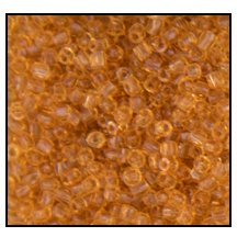 Size 12/0 (1.7mm) 3-cut glass seed bead in transparent topaz.