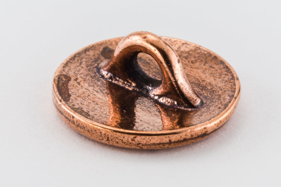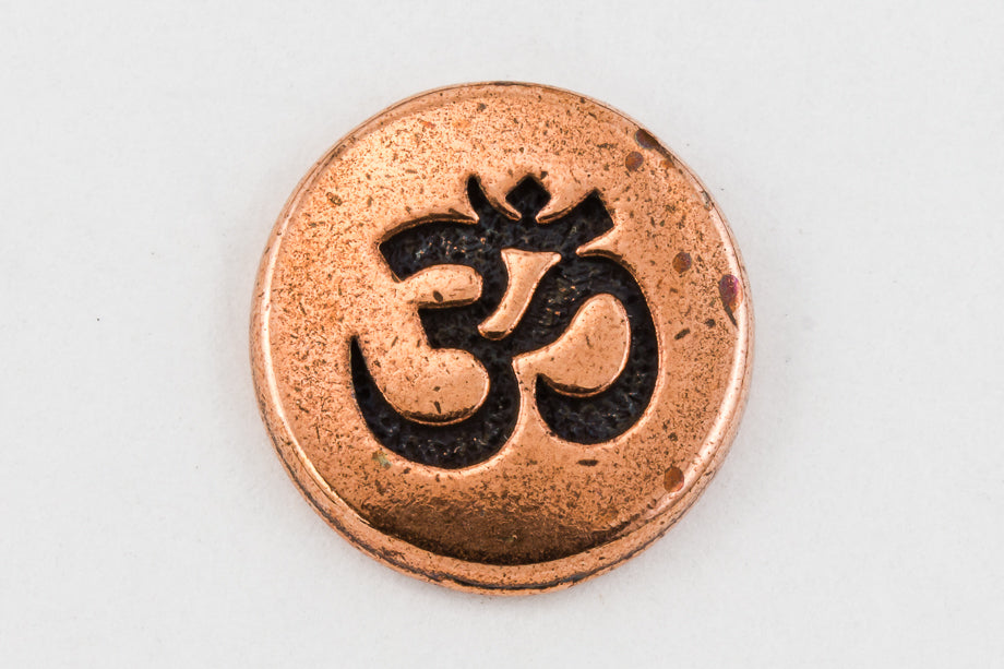 12mm antique copper round pewter button with engraved "Om" symbol and 2.4mm shank on back.