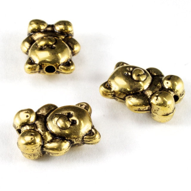 10mm x 12mm antique gold two sided teddy bear bead with vertical hole.