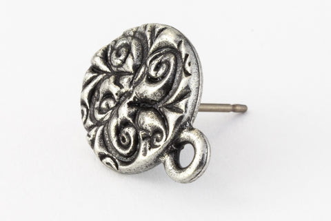 12mm antique pewter "Jardin" ear post with 1.7mm loop.
