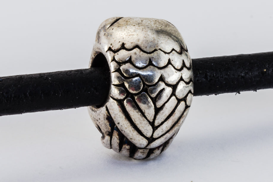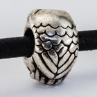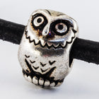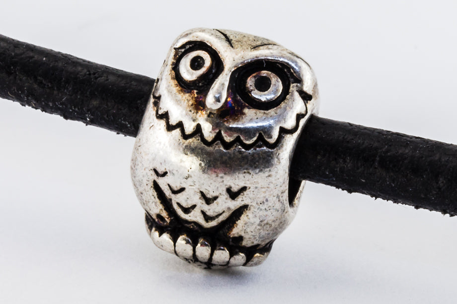 12mm x 8mm antique silver owl bead with sideways hole. Fits 4mm cord.