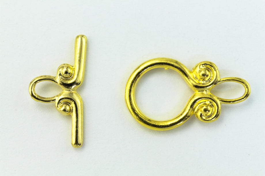 Spiral decorated toggle clasp with 12mm ring and 18mm bar.