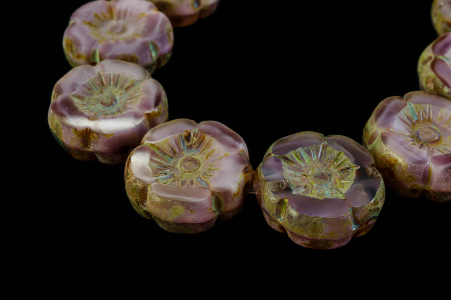12mm opal lavender flower shaped bead with Picasso finish.