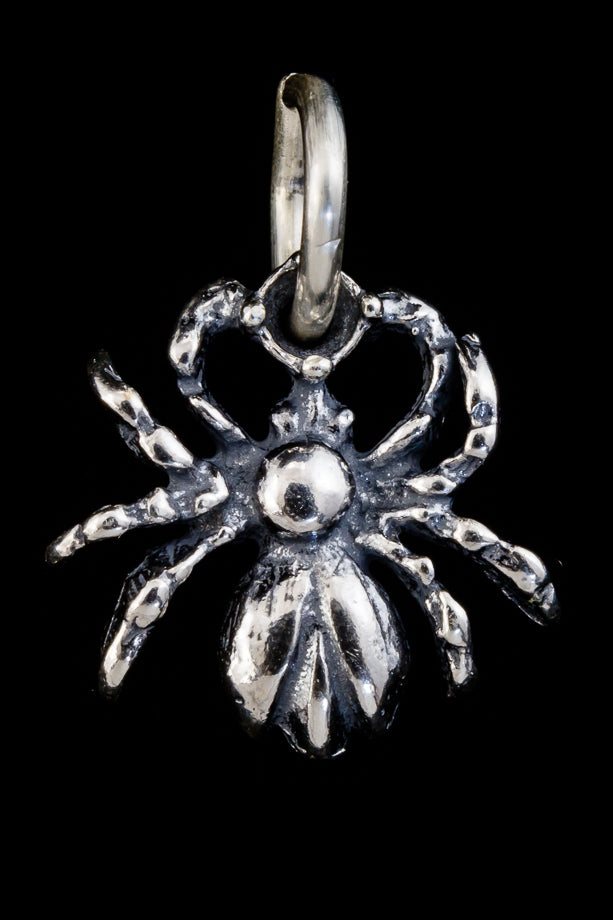 12mm x 12mm detailed spider with loop and 4mm open jump ring.