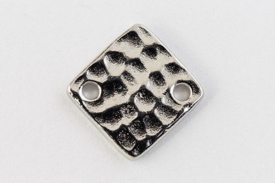 12.1mm flat square with hammered texture and hole on opposite corners.
