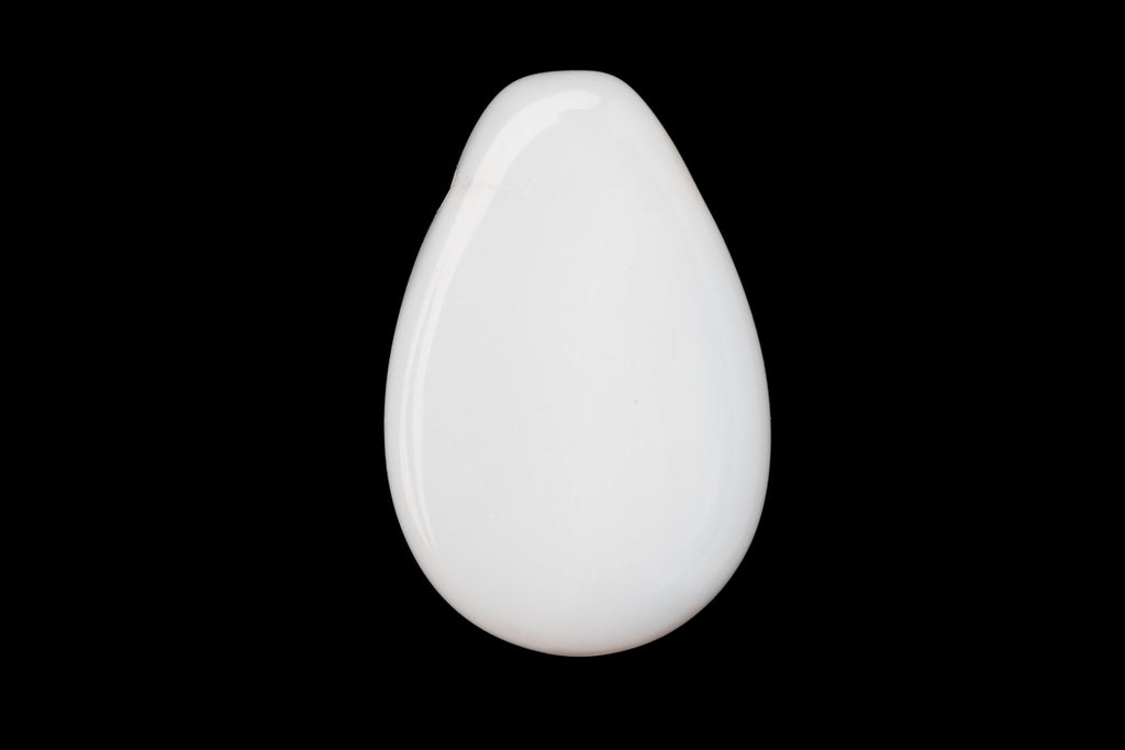 11.77mm x 17.9mm flat teardrop bead with sideways hole through top.