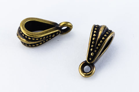 5.25mm x 13mm antique brass Royal bail. Inner diameter of bail 3.75mm, inner diameter of loop 1.25mm.