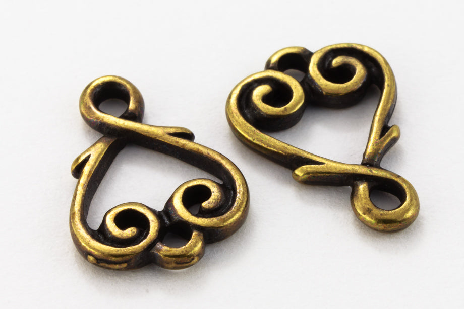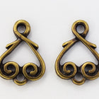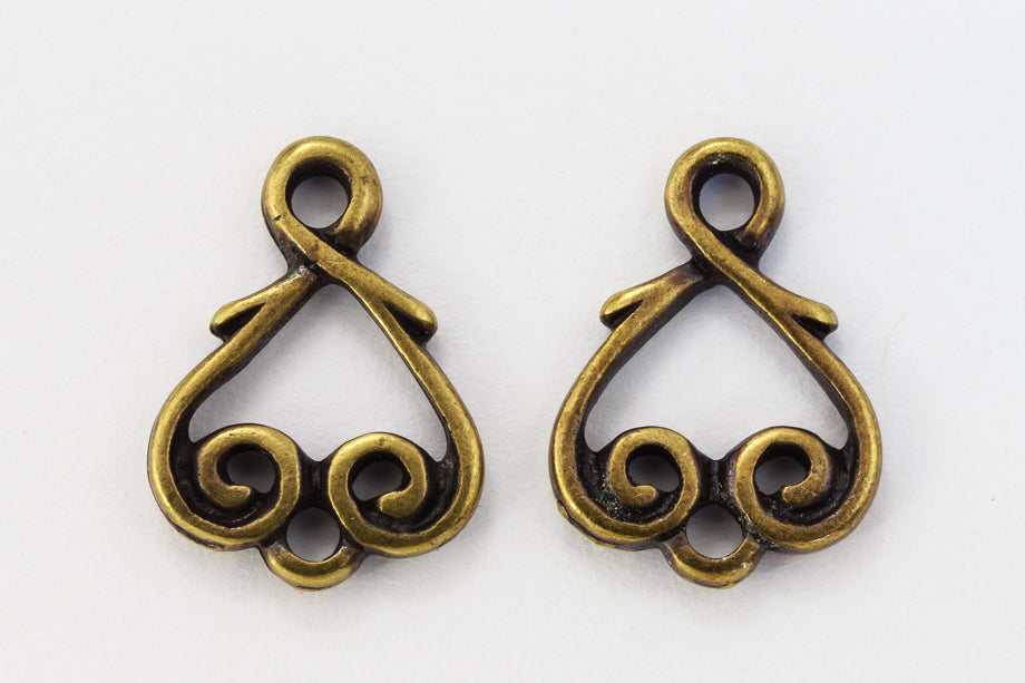 13.2mm x 9.5mm antique brass heart vine connector. 1.5 loops with 1mm hole.