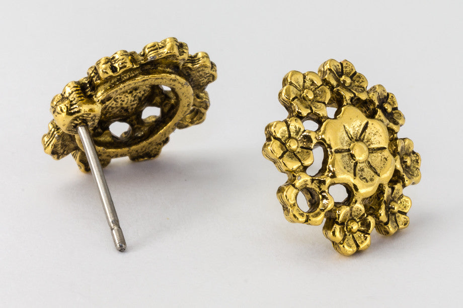 13mm arrangement of flowers with 3mm loop at bottom and standard post on back.