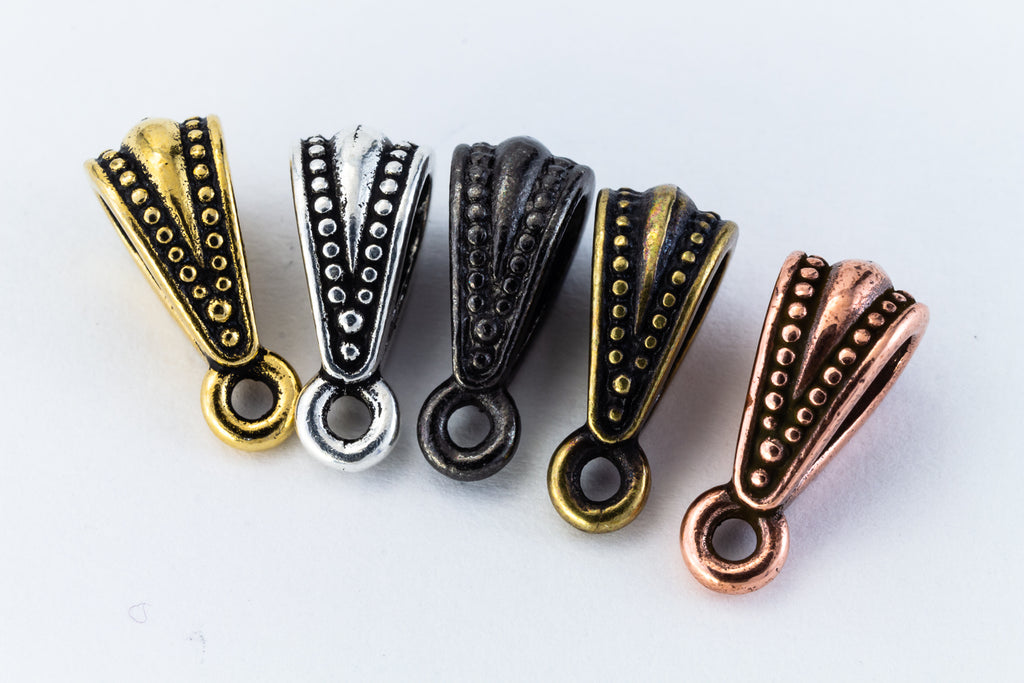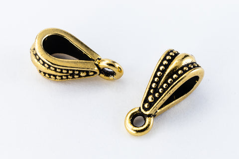 5.25mm x 13mm antique gold Royal bail. Inner diameter of bail 3.75mm, inner diameter of loop 1.25mm.
