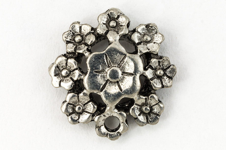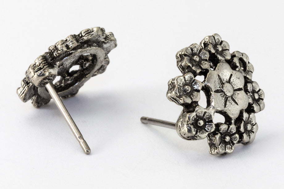 13mm arrangement of flowers with 3mm loop at bottom and standard post on back.