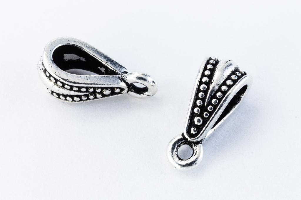 5.25mm x 13mm antique silver Royal bail. Inner diameter of bail 3.75mm, inner diameter of loop 1.25mm.