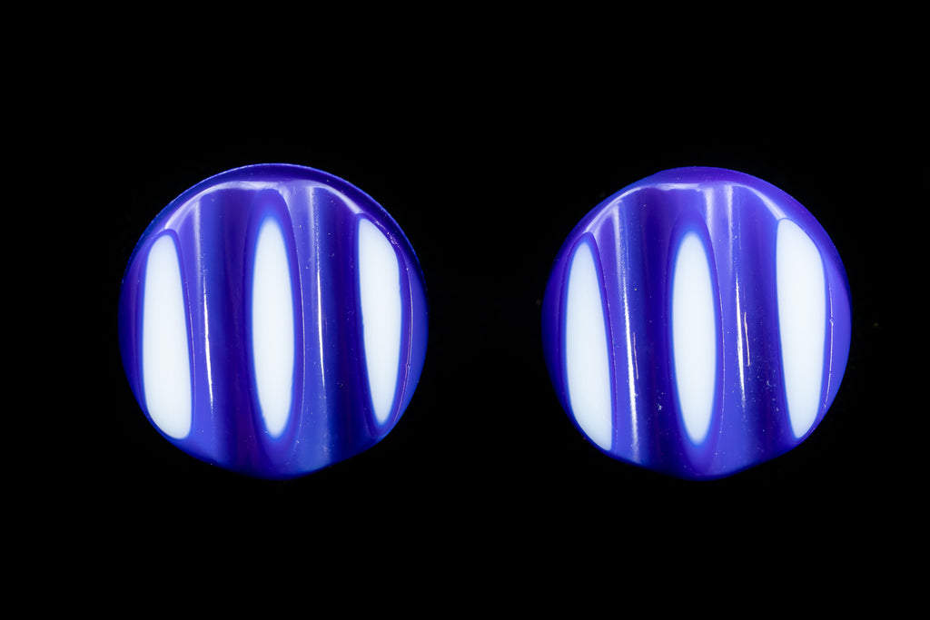 13mm Royal Blue/White Ridged Glass Button #BUT107