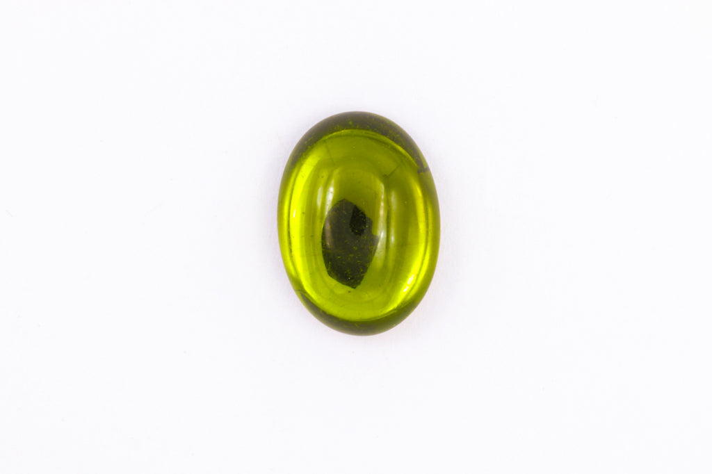 13mm x 18mm olivine smooth domed glass oval cabochon.