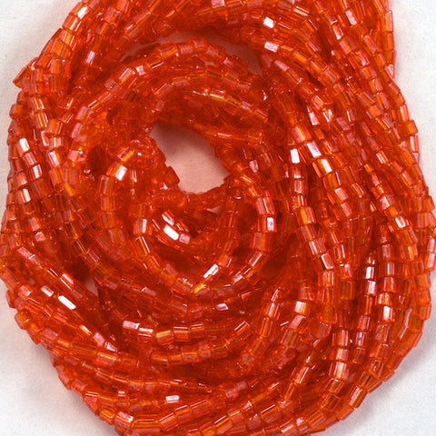 Size 14/0 cut transparent marmalade antique Venetian glass micro seed beads.