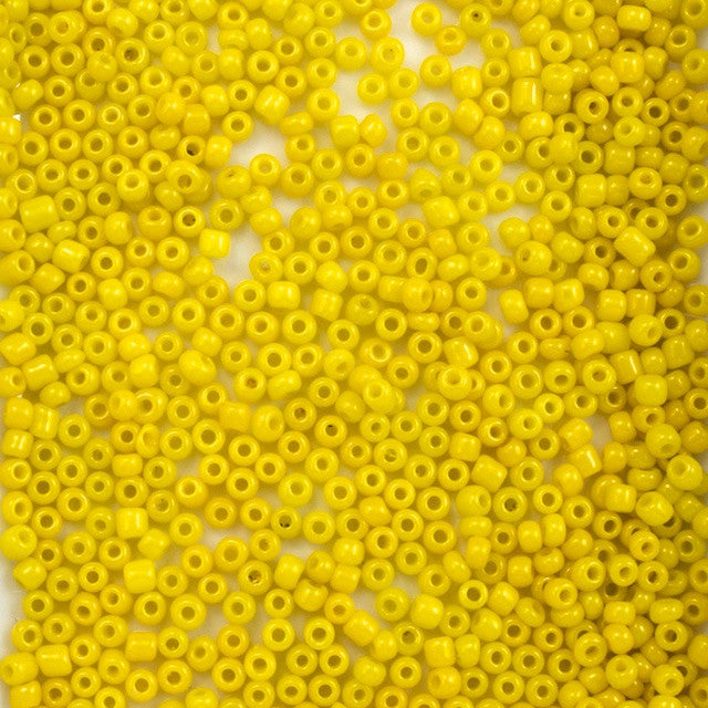 Size 14/0 opaque marigold yellow antique Venetian glass micro seed beads.