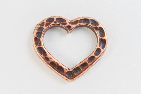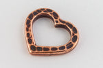 12.4mm x 14.2mm antique copper open heart with hammered texture.